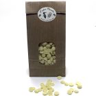 Composition du chocolat blanc: sucre de canne, beurre de cacao, Vanille Bourbon, Lait entier en poudre